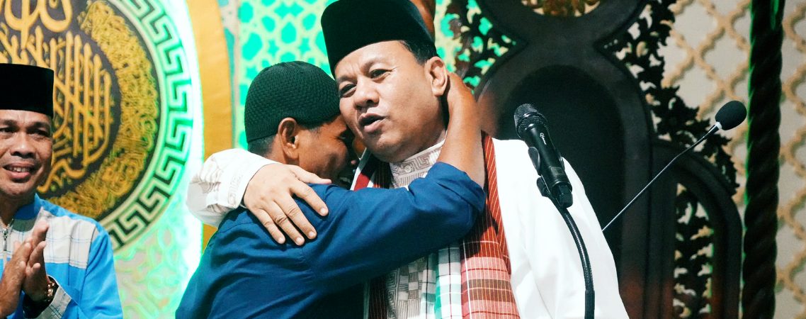 Sentajo Raya - Seorang Ahli Bidal Sukardiman diberikan Kejutan Umroh oleh Bupati Kuantan Singingi Dr. H. Suhardiman Amby, Ak., MM saat gelar Safari Ramadhan di Masjid Raya Desa Kampung Baru Kecamatan Sentajo Raya, Rabu (03/04/2024) malam. Bupati H Suhardiman Amby apresiasi atas...