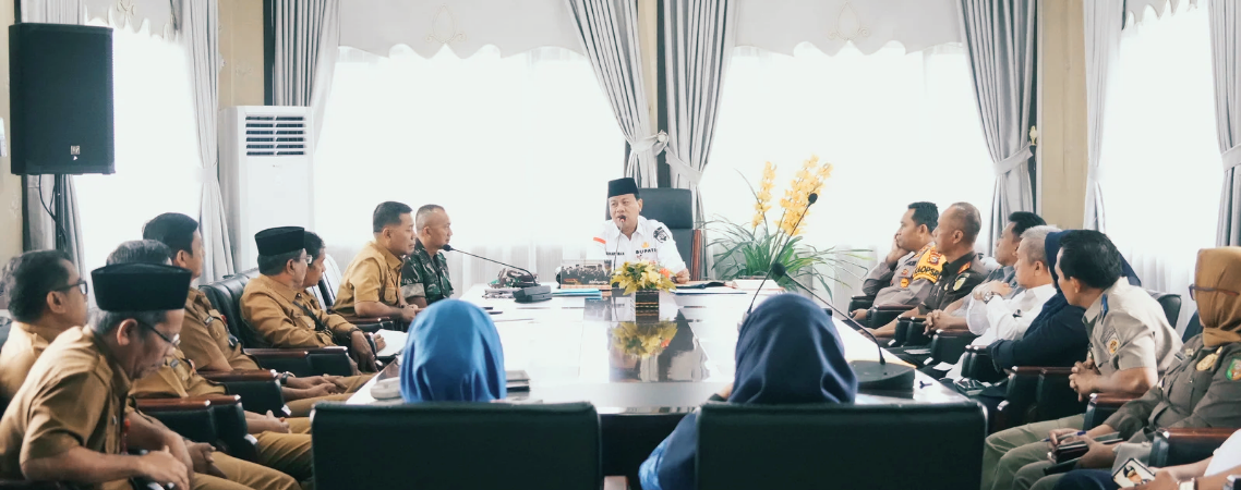 Teluk Kuantan - Bupati Kabupaten Kuantan Singingi Dr. H. Suhardiman Amby, Ak., MM pimpin Rapat Tentang Pembahasan Langkah Konkret Pengendalian Inflasi Daerah Tahun 2024 bersama Forkopimda dan Organisasi Perangkat Daerah, di Ruang Rapat Bupati. Senin (18/3/2024) Pagi. Sekretaris Daerah...