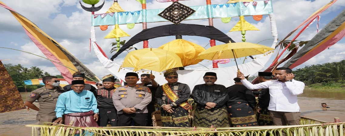 KUANSING - Ribuan warga dari dalam dan luar kota, serta warga tempatan membanjiri Tepian Muko Lobua Lubuk Jambi Kecamatan Kuantan Mudik. Mereka menyaksikan prosesi Menjopuik Limau dan Perahu Begandung, Selasa 25/4/23. Plt...