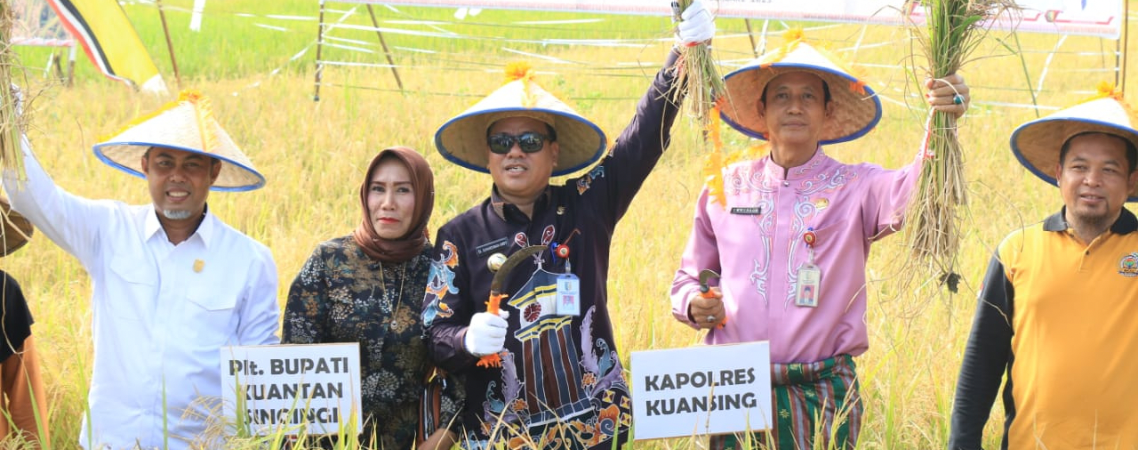 Teluk Kuantan – Plt Bupati Kuantan Singingi Drs. H. Suhardiman Amby, Ak., MM didampingi oleh Kepala Dinas Tanaman Pangan Hortikultura dan Ketahanan Pangan Ir. Emerson menghadiri panen raya padi di Desa Pulau Aro, Kecamatan Kuantan Tengah, Jumaat, 10/02/2023...