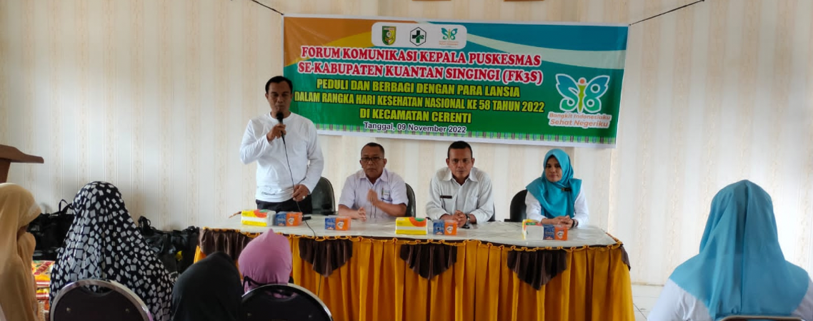 CERENTI, — Forum Kepala UPTD Kesehatan Puskesmas Kabupaten Kuantan Singingi (Kuansing), Riau gelar Bakti Sosial (Baksos) dalam rangka memperingati Hari Kesehatan Nasional (HKN) ke-58 Tahun 2022 di Puskesmas...