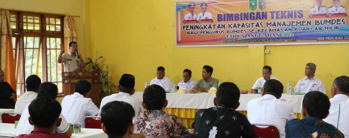 Teluk Kuantan- Plt Bupati Kuantan Singingi Drs. H. Suhardiman Amby, Ak., MM menghadiri sekaligus memberikan pengarahan terkait dalam peningkatan manajemen Badan Usaha Milik Desa (BUMDES) kepada pengurus Bumdes se Kecamatan Kuantan Hilir.