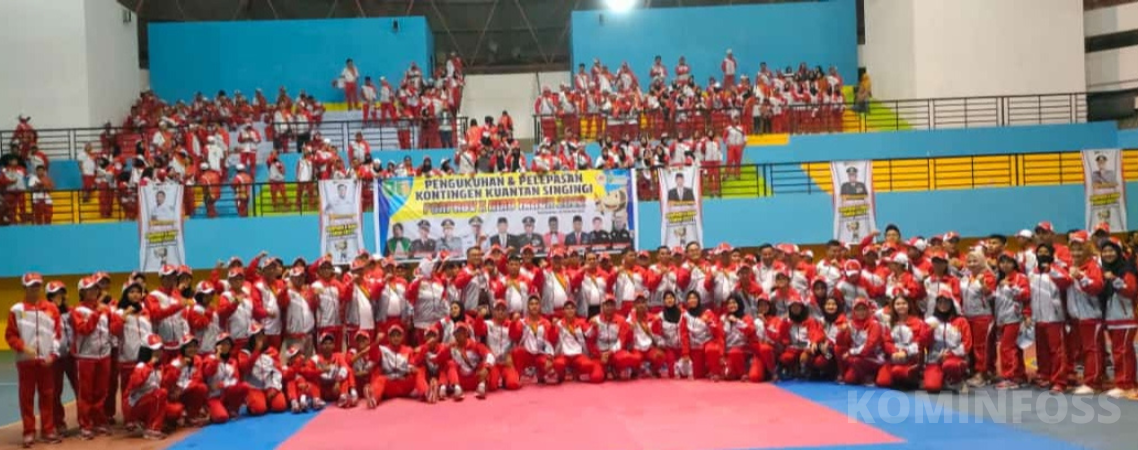 Kuansing - Sebanyak 650 orang Tim Kontingen Porprov X Riau KONI Kuansing dikukuhkan oleh Plt. Bupati Kuantan Singingi ( Kuansing), Riau Suhardiman Amby Minggu ( 06/11/2022 ) malam di Hall A Sport Center Teluk Kuantan Minggu malam.