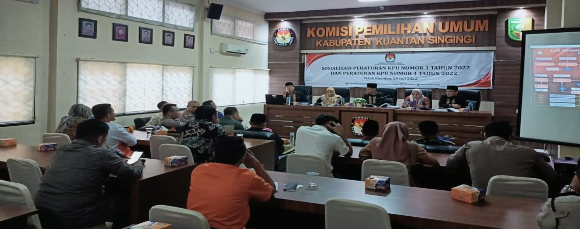 Kuansing - Komisi Pemilihan Umum ( KPU ) Kabupaten Kuantan Singingi ( Kuansing ), Riau menyelenggarakan Sosialisasi Peraturan Komisi Pemilihan Umum ( PKPU ) nomor 3 dan PKPU nomor 5 tentang Tahapan dan Jadwal Pendaftaran, Verifikasi administrasi dan vaktual Pemilu...