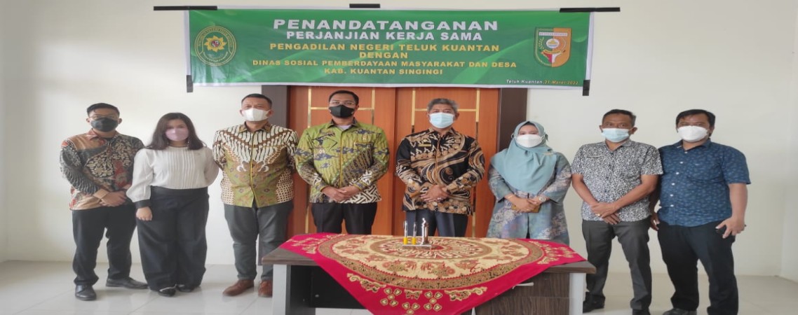 Teluk Kuantan - Ketua Pengadilan Negeri Telukkuantan Wijawijata, SH menandatangani nota kesepahaman bersama Plt. Kepala Dinas Sosial dan Pemerintahan Desa Kabupaten Kuantan Singingi ( Kuansing ), Riau Erdiansyah, Kamis pagi ( 31/03/2022 ) di Kantor PN...