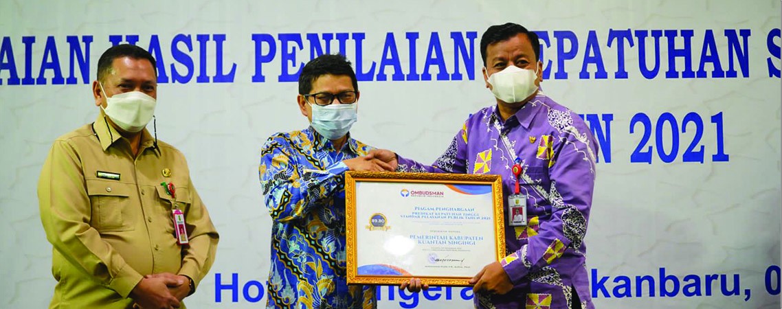 Teluk Kuantan - Pemerintah Kabupaten Kuansing, menerima penghargaan Kepatuhan Standar Pelayanan Publik Tahun 2021 dari Ombudsman RI Perwakilan Riau, Selasa ( 08/02 ) di Pekanbaru Penghargaan yang langsung diterima oleh Plt Bupati Kuansing Drs. H. Suhardiman Amby,Ak, MM merupakan...
