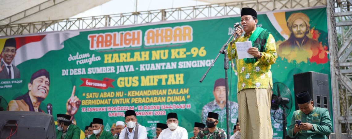 Teluk Kuantan - Plt. Bupati Kuantan Singingi ( Kuansing ) Drs. H. Suhardiman Amby, Ak, MM menghadiri acara Tabligh Akbar Hari Ulang Tahun ( Harla ) Nadathul Ulama ( NU ) ke 96 yang ditajah oleh PC NU Kuansing, Sabtu siang ( 29/01) di Desa Sumber Raya Kecamatan...