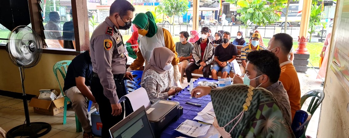 TELUK KUNTAN - Dalam rangka percepatan capaian target vaksin 70% hingga akhir tahun ini, sebanyak 200 orang diberikan suntik vaksinasi Covid-19 yang diperuntukan kepada tenaga Pendidik, Pelayan publik, tenaga kesehatan (Nakes) dan masyarakat...