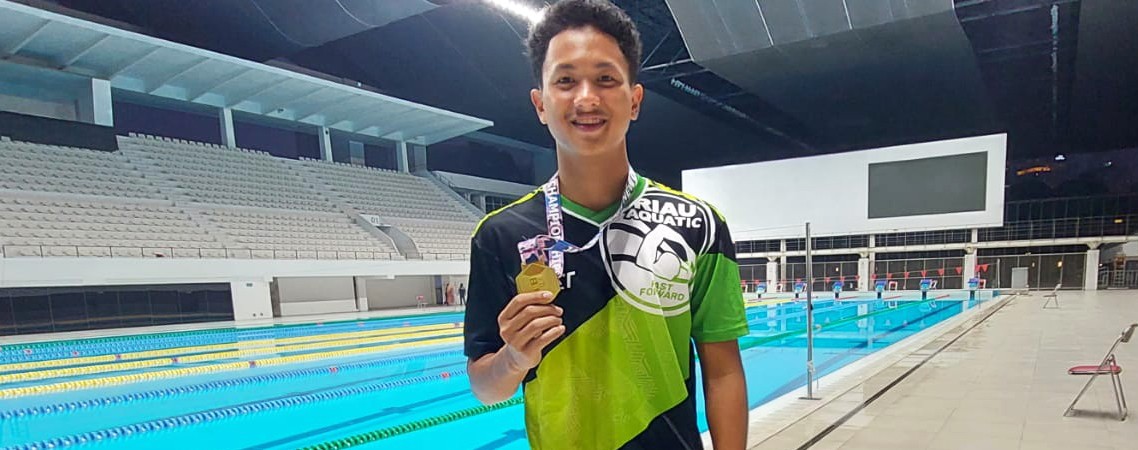 TELUK KUNATAN - M. Ricky, perenang Kuantan Singingi (Kuansing), Riau berhasil meraih medali emas di ajang Jakarta Open, Jumat (03/09/2021). Ia meraih medali emas setelah mencatatkan waktu 24,60 detik pada nomor 50 meter gaya bebas.