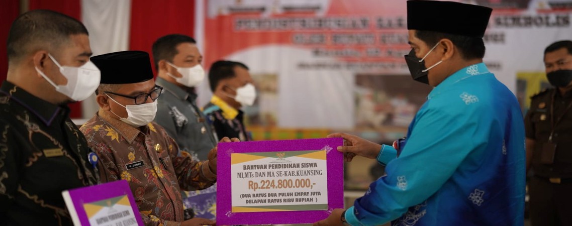 TELUKKUANTAN - Bupati Kuantan Singingi (Kuansing), Riau menyalurkan zakat secara simbolis, Kamis (12/08/2021) pagi di Pendopo Rumah Dinas Bupati Kuansing. Zakat yang disalurkan tersebut dikelola oleh Badan Amil Zakat Nasional (BAZNAS)...