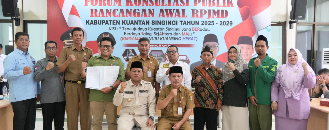 Teluk Kuantan - Bupati Kuantan Singingi (Kuansing) Dr. H. Suhardiman Amby, MM membuka Forum Konsultasi Publik Rancangan Awal (FKP Ranwal) Rencana Pembangunan Jangka Menengah Daerah (RPJMD) 2025-2029, di Ruang Rapat Multimedia Kantor Bupati, Selasa (29/04/2025). Forum ini bertujuan...