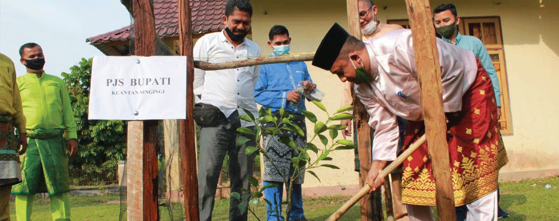 TELUKKUANTAN - Pjs Bupati Kuantan Singingi (Kuansing), Riau, Roni Rakhmat, Senin (5/10/2020), melakukan penanaman pohon di Rumah Godang Kenegerian Toluak, yang terletak di kawasan Karak desa Pulau Aro, Teluk Kuantan. Penanaman pohon ini dilakukan dalam rangka...