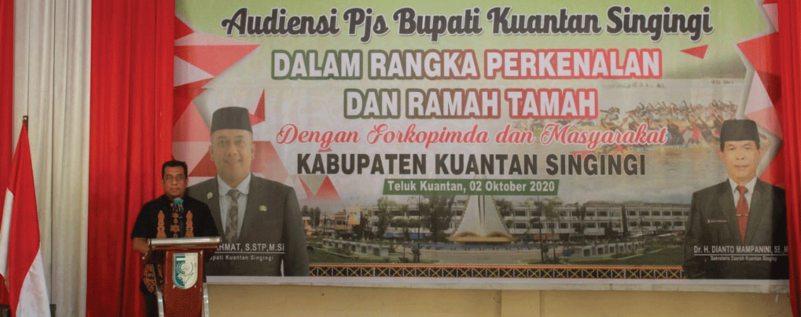 TELUK KUANTAN - Dalam rangka perkenalan dan ramah tamah dengan Forkopimda dan masyarakat, Pejabat Sementara ( Pjs) Bupati Kuantan Singingi menggelar acara audiensi di Pendopo Rumah Dinas Bupati Jumaat (2/10/ 2020). Ikut mendampingi PJS Bupati Roni Rahmat,...
