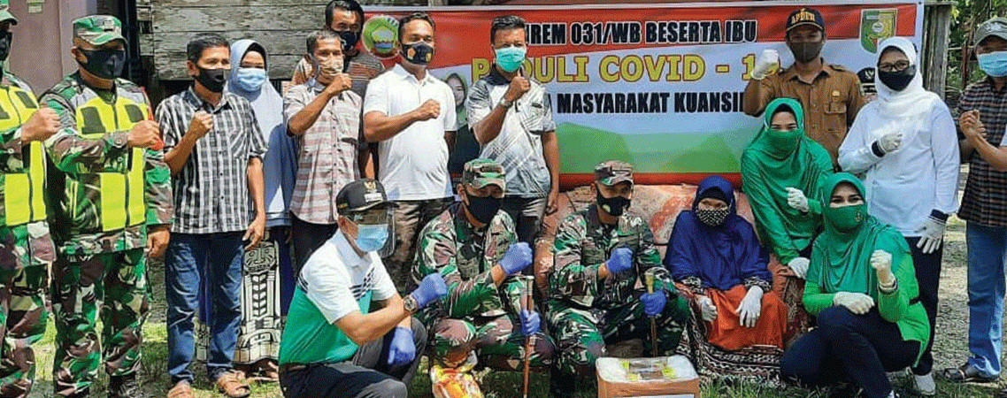 Telukkuantan – Demi meringankan beban masyarakat yang terdampak pandemi Covid-19, Danrem 031/Wira Bima Brigjend TNI M Sech Ismed SE M Han memberikan bantuan Sembako secara simbolis kepada masyarakat di Desa Pulau Aro, Kecamatan Kuantan Tengah, Sabtu (22/08)...