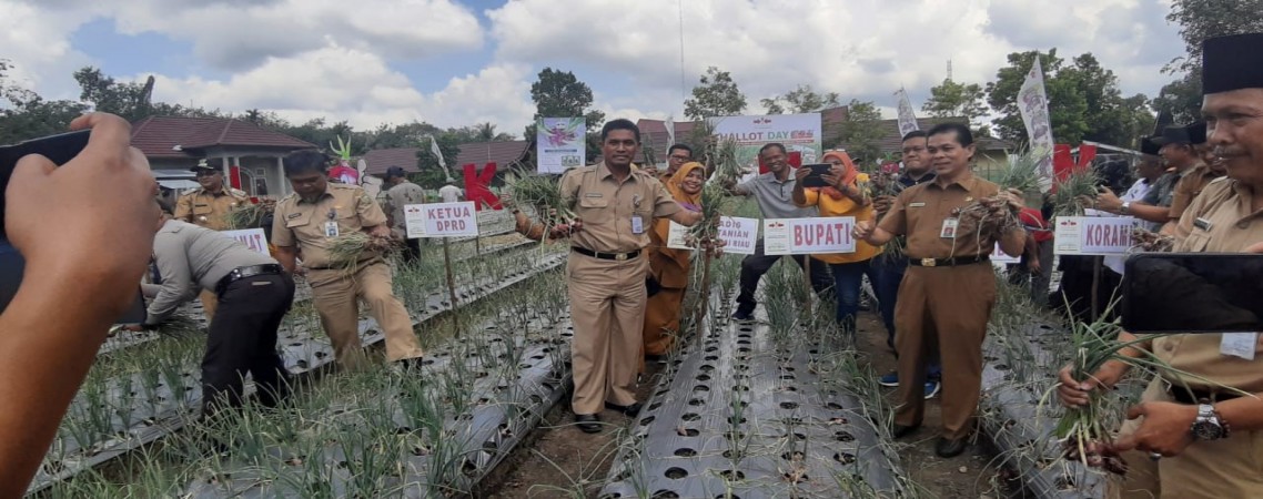 Teluk Kuantan – Sekretaris Daerah (Sekda) Kabupaten Kuantan Singingi (kuansing) Dr Dianto Mampanini panen raya bawang merah Bersama kelompok tani Beken Jaya, di Desa Benai Kecil, Senin (17/02). Ketua Kelompok Tani Beken Jaya, Yunisman dalam laporannya...
