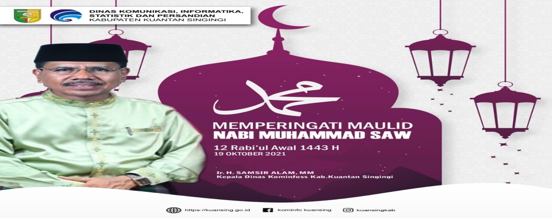 Dinas Komunikasi, Informatika, Statistik dan Persandian Kabupaten Kuantan Singingi Mengucapkan Selamat Memperingati Maulid Nabi Muhammad SAW 12 Rabi'ul Awal 1443 H