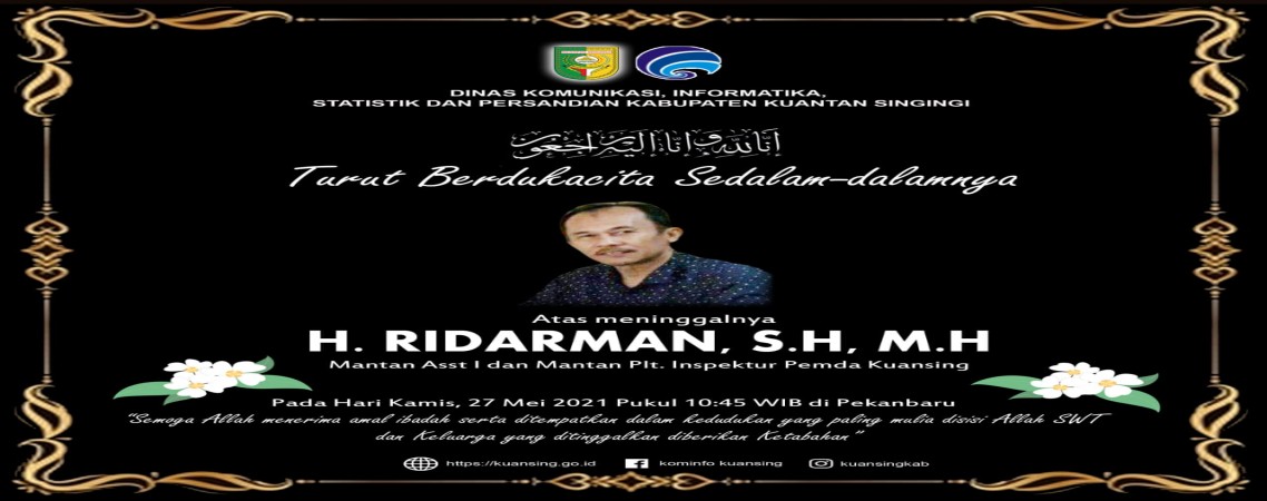 Diskominfoss Kabupaten Kuantan Singingi Mengucapkan Belasungkawa Atas Berpulang Ke Rahmatullah H.Ridarman SH MH