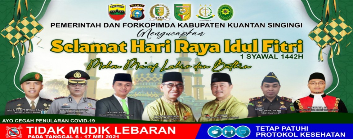 Pemerintah Kabupaten Kuantan Singingi Mengucapkan Selamat Hari Raya Idul Fitri 1 Syawal 1442 Hijriah