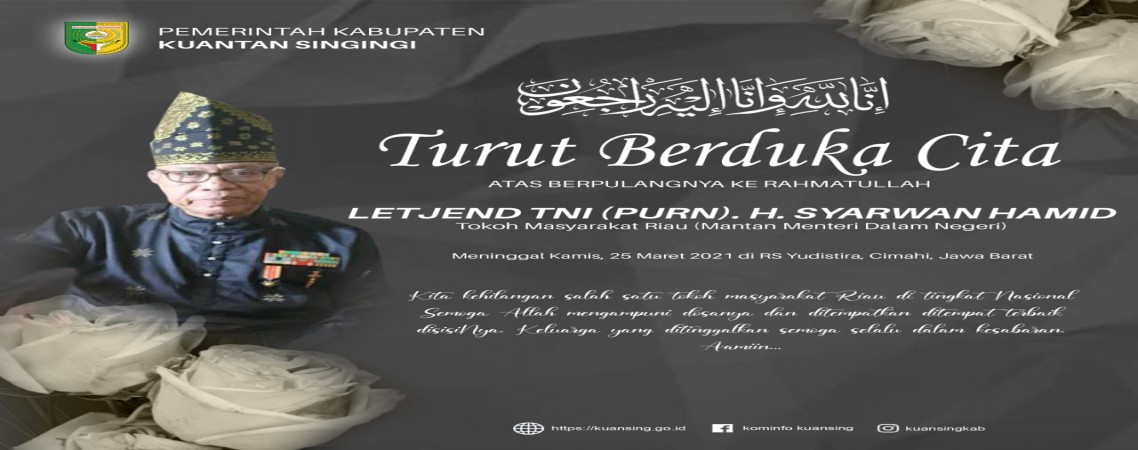 Pemerintah Kabupaten Kuantan Singingi Mengucapkan Belasungkawa Atas Berpulang Ke Rahmatullah Letjend TNI Purnawirawan H. Syarwan Hamid
