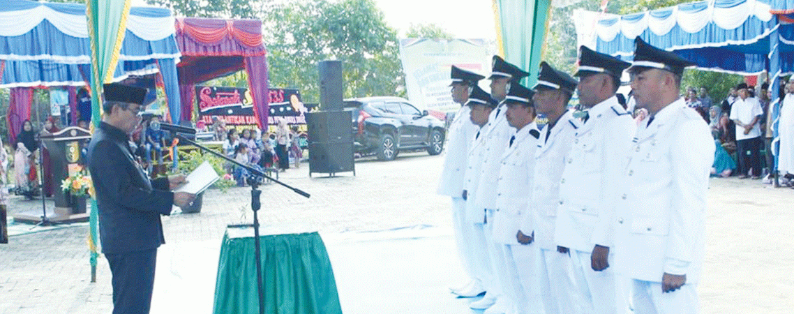Teluk Kuantan – Bupati Kabupaten Kuantan Singingi (Kuansing), Drs. H. Mursini secara resmi melantik Kepala Desa Terpilih di halaman kantor camat Pucuk Rantau, Kamis (19/12).