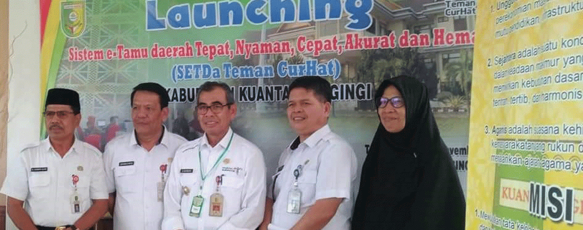 Telukkuantan - Bupati Kuantan Singingi (Kuansing),H. Mursini resmi launching Sistem e-Tamu dalam rangka mewujudkan tata pemerintahan berbasis elektronik di bagian depan kantor Sekretariat Daerah Kabupaten Kuantan Singingi, Rabu(20/11)