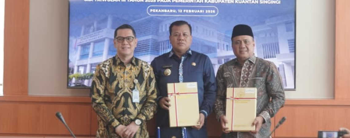 Penegasan tersebut disampaikan Bupati saat menghadiri agenda penyerahan Laporan Hasil Pemeriksaan (LHP) Kinerja atas Efektivitas Pengelolaan Pajak Daerah dan Retribusi Daerah Tahun 2024 hingga Triwulan III Tahun 2025 pada Pemerintah Kabupaten Kuantan Singingi, yang berlangsung di Gedung BPK RI Perwakilan Riau lantai 2, Kamis (12/02/2026).