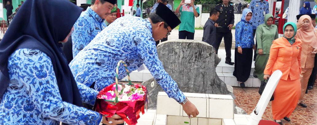 Teluk Kuantan - Bupati Drs. H. Mursini, M.Si, Pimpin Upacara Peringatan Hari Pahlawan tingkat Kabupaten Kuantan Singingi (Kuansing) tahun 2017 di Lapangan Limuno Telukkuantan, Jumat (10/11/2017).