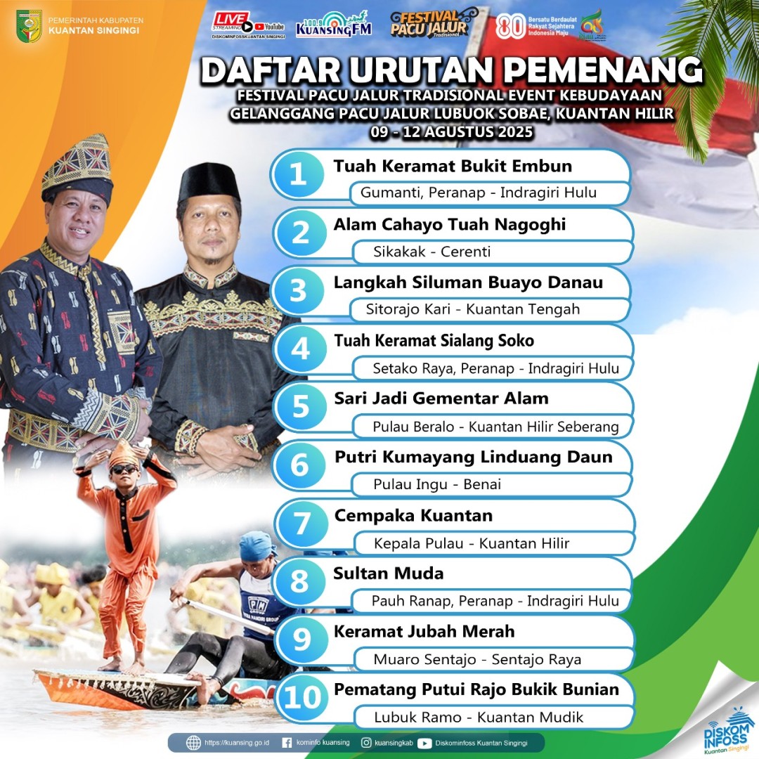 Daftar Pemenang Festival Pacu Jalur Event Kebudayaan 2025