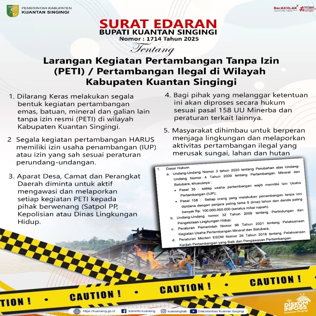 Surat Edaran Bupati Kuantan Singingi Tentang Larangan PETI